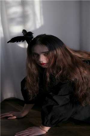 她的双眼被蒙起来,看不清周围的场景。